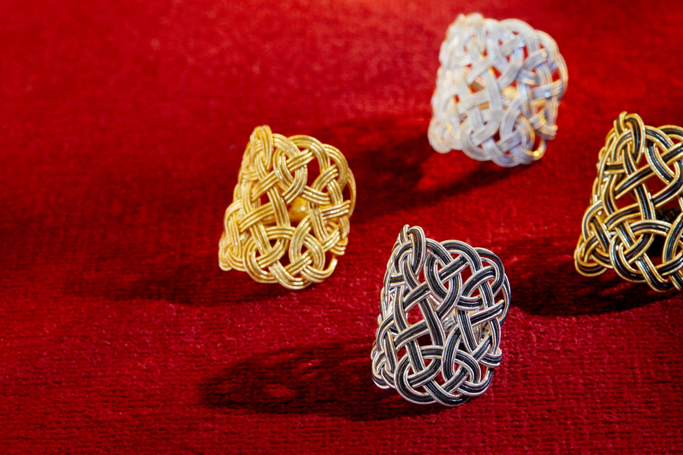 Kazaziye is handmade out of pure silver wires coiled around a silk thread. These coils are woven into chains as well as various sphere and knot motifs. Every single piece in our Kazaziye jewelry line is made with precision and experience in order to create distinctive, striking pieces that can be worn to both casual and formal occasions.