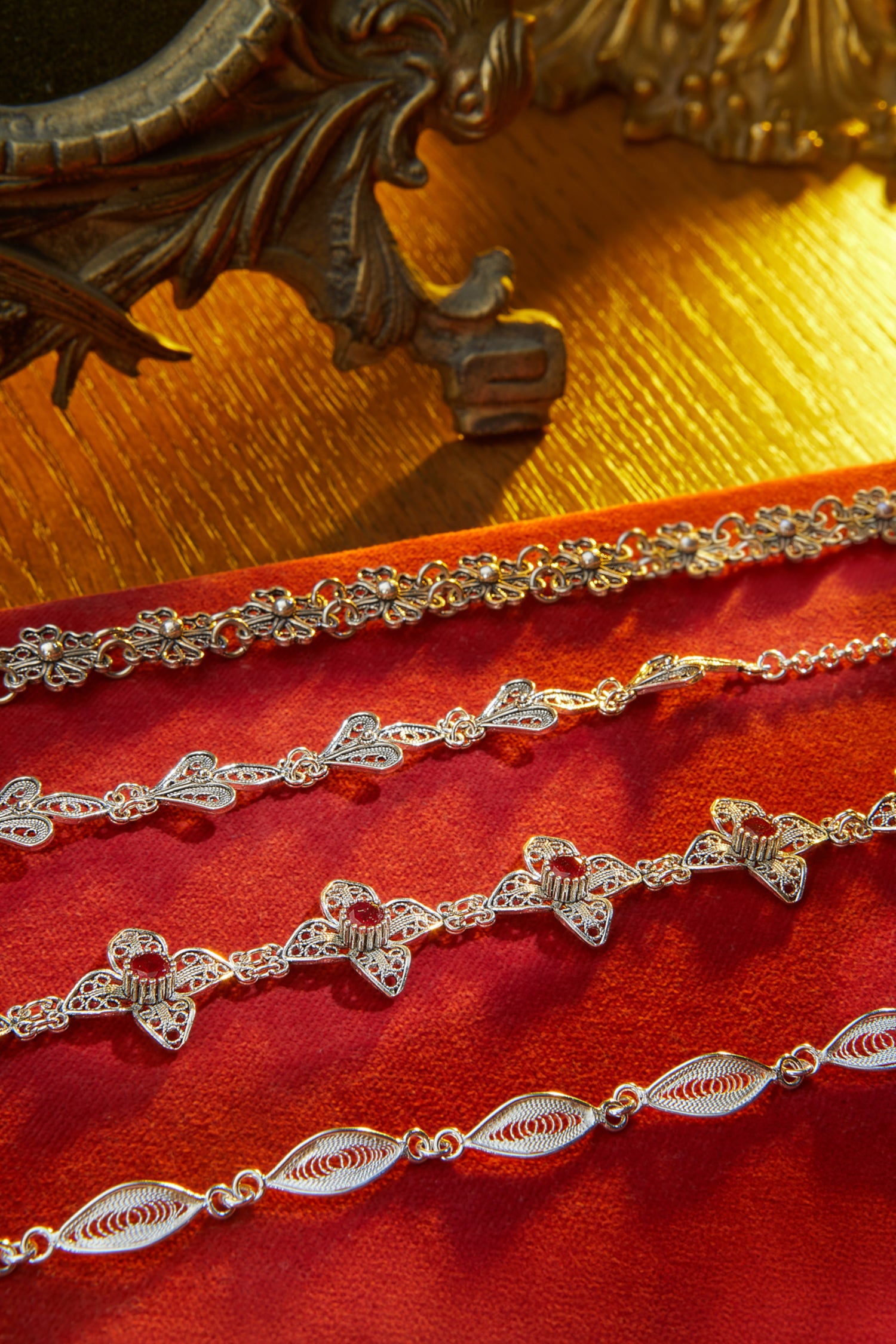 While most recognized for its iconic wide bracelets and statement necklaces which beautifully showcase the scale of the weave, our collection also features delicate rings and earrings. Each piece seamlessly blends traditional motifs with a refined, modern finish, ensuring it complements both historical attire and contemporary fashion. By choosing Trabzon Hasırı from Bahtışen, you are investing in a time-honored tradition and supporting the rare expertise of these specialized jewelers, ensuring this magnificent and technically demanding form of artistry continues for generations to come.